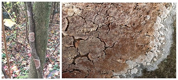 Wer nun voller Tatendrang loszieht und unbedingt auch einmal eine Septobasidium-Art finden will, dem sei noch gesagt, dass sich die Arten von Winter bis Frühling (ohne störendes Laub) besser beobachten lassen. Bei den Funden im Wallis ist aufgefallen, dass Septobasidium cf orbiculare sich feucht (bei Regen) kontrastreicher von der Rindenfarbe unterscheidet als in trockenem Zustand. Mit Ausnahme von S. carestianum sind geeignete Standorte zudem an ehesten an wärmebegünstigten Stellen (vorzugsweise in der Süd- / Südwestschweiz) zu finden.